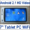 W1050 Android 2.1 Tablet PC Specification: LCD: 7 inch Touch (800x480), Support 1080P video play backCPU: ARM11 architecture processor, RAM: 256MStorage: 2GB flash, Support SD up to 32GBOS: Linux/Android/Win CENetworking: Support external 3G USB Wireless modemBuild in WiFi/Speaker/Mic/Mini USB/BluetoothOffice: Read/edit Excel/doc./read PDFSupport hardward 3D graphics accelerationAudio/Video: WMA,WAV, RM/RMVB, MPEGPower Li Battery 4500mAH, 5 hoursLanguage: Chinese/English,